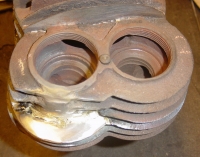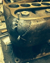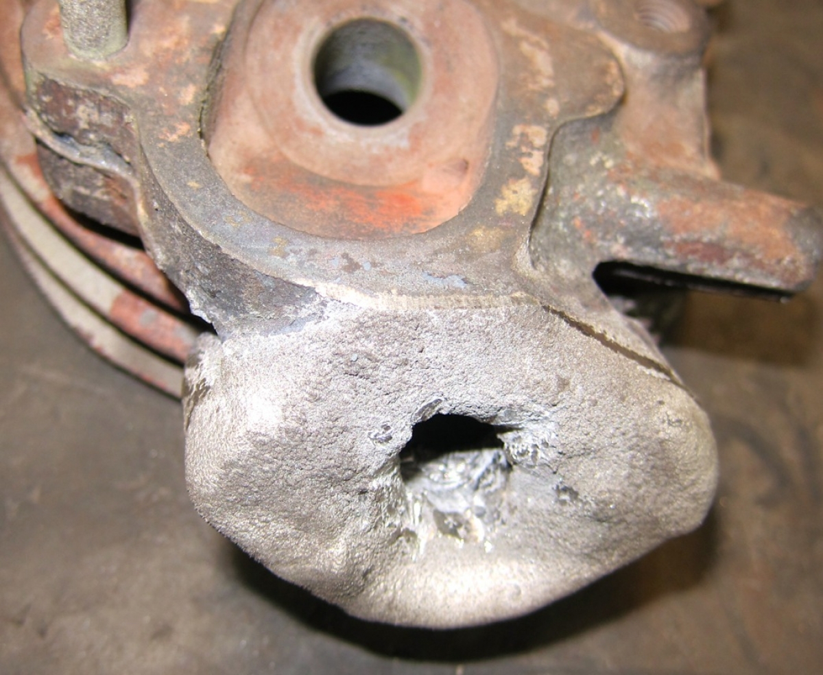 Due to the high penetration ability of molten Nickel alloy powder into cast iron the resulting welds are very strong and uniform. You can build up missing material with no practical limits. Fill holes, repair cracks, add broken or missing cylinder base flange, etc.