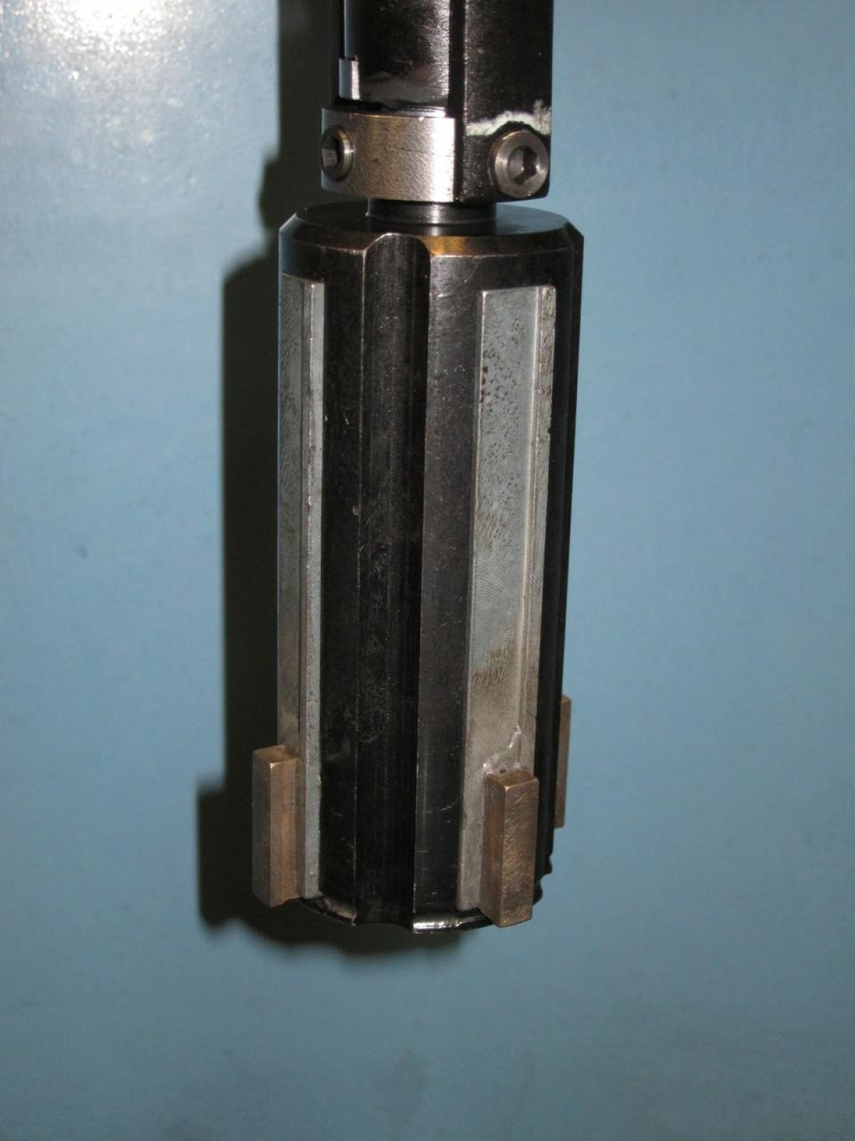 One such area is cracks between threaded valve plug holes on side valve cylinders. These can be successfully repaired using a single Lock&Stitch threaded pin, which has a “saw-tooth” thread and a “dove-tail” under the head. The repair is done by first drilling an appropriately sized hole in the middle of the crack. Then it is threaded with a “saw-tooth” tap and then the “dove-tail” recess is machined on top with a special cutter. The pin is screwed down and tightened snugly until the hex head breaks off. The final operation is machining the protruded head stub to allow for smooth finish for the valve plug copper gasket.