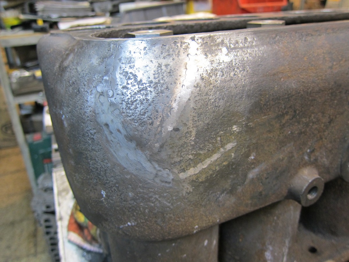Due to the high penetration ability of molten Nickel alloy powder into cast iron the resulting welds are very strong and uniform. You can build up missing material with no practical limits. Fill holes, repair cracks, add broken or missing cylinder base flange, etc.