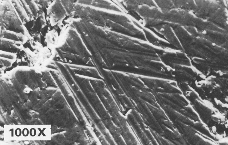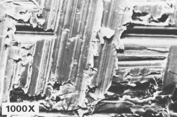 Pirms apstrādes ar Flex-Hone instrumentu. Redzamas asas plēsta metāla šķautnes, kas rada berzi un pirms laika sabojā kompresijas gredzenus: